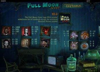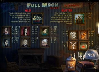 - Full Moon fever Wild Logo symbol substitutes for all other symbols except Scattered Haunted House.