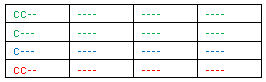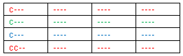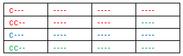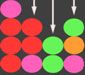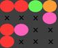- Hay 3 resultados de color posibles para cada núcleo: rojo, azul y verde (los colores son indicados por el borde del símbolo y la esfera alrededor de la cual rotan los símbolos)