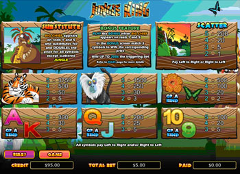 - All wins occur on selected lines except Scattered Jungle which pays anywhere left to right and/or right to left
