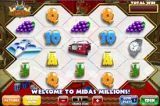 Midas Millions es un juego de 5 cilindros con el panel de cilindros en forma de un panal de abejas. Este juego no tiene líneas de pago. El usuario recibe premio en función de los grupos de símbolos idénticos adyacentes que obtenga. Esto propicia una gran variedad de premios (hay más de 100.000 posibilidades de ganar). El juego tiene comodines que se expanden (y transforman los símbolos que aparezcan entre ellos en comodines de oro) y supercomodines (que convierten algunos de los símbolos a su alrededor en comodines de oro). Ambos símbolos otorgarán un premio doble cuando el Rey Midas transforme los símbolos en comodines de oro. Este juego también ofrece tiradas gratuitas con comodines bloqueados en las que aún más símbolos pueden convertirse en comodines y quedarse bloqueados en su posición para las tiradas gratuitas restantes. De este modo, los premios irán aumentando conforme se vayan jugando las tiradas gratuitas. Es posible ganar hasta un millón en una sola tirada realizando la apuesta máxima y obteniendo un grupo de 12 o más símbolos con un símbolo cualquiera, excepto el símbolo del reloj (por ejemplo, el jet, el Rolls Royce, el champán, las uvas), y consiguiendo uno o varios comodines de oro que dupliquen el premio.